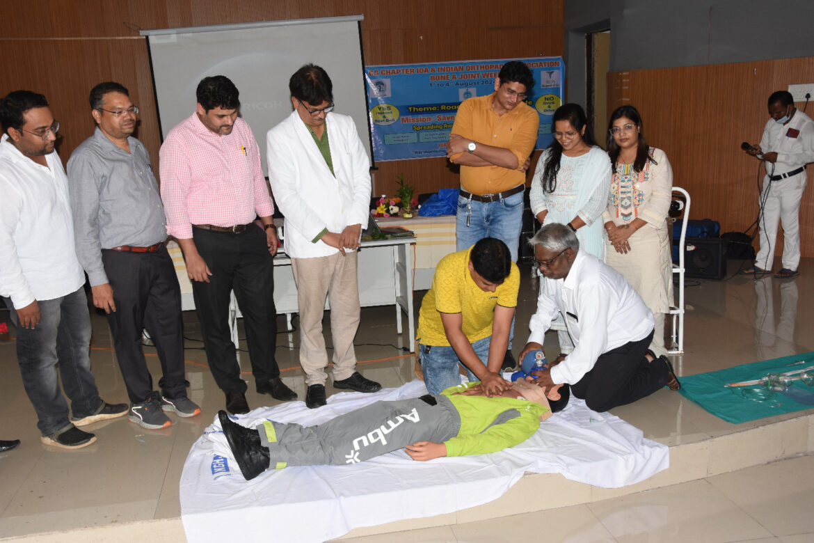 इसी क्रम में निश्चेतना विभाग एच ओ डी डा.ए एम लकड़ा, डॉ.निधि, डॉ.लेस पटेल, डॉ.सीबी पैकरा, डॉ.नवनीत व डॉ.अमितेश पाण्डेय उपस्थित रहे। डॉ.लकड़ा द्वारा सीपीआर का प्रायोगिक पहलू दिखाया गया।और डॉ.निधि अमाटी ने सीपीआर पर पेपर प्रेजेंटेशन किया। कार्यशाला में आर्थो क्लब रायगढ़ से डा.एसबी अवस्थी, अस्थि रोग संघ के प्रदेश अध्यक्ष डॉ.बीआर पटेल, डॉ.आरके गुप्ता, डॉ.दिनेश पटेल, डॉ.डोलेश्वर पटेल,डा.आकाश पंडा उपस्थित रहे। कार्यशाला को सीनियर आर्थोपेडिक सर्जन डॉ.अवस्थी ने संबोधित किया। मेडिकल कॉलेज के डीन डॉ.पीएम लुका ने कहा कि इस के आयोजन होते रहना चाहिए, इसके लिए मेडिकल कॉलेज हमेशा तैयार है। कार्यशाला में एम एस डा.मनोज मिंज की उपस्थिति रही, उन्होंने ट्रैफिक नियमों का पालन करने पर जोर दिया। कार्यशाला के आयोजन में डॉ. सिद्धार्थ सिन्हा का विशेष सहयोग रहा। समापन अवसर पर डॉ.बीआर पटेल ने कार्यक्रम की सफलता पर धन्यवाद ज्ञापित किया।