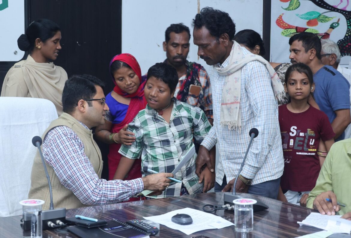 जनदर्शन में आज जिले के विभिन्न क्षेत्रों से आये आवेदको ने अपनी समस्याओं, मांगों और शिकायतों से संबंधित आवेदन प्रस्तुत किये।जनदर्शन में आज विकासखंड लैलूंगा के ग्राम मडियाकछार निवासी ठंडाराम अपने दिव्यांग पुत्र के राशन कार्ड एवं ट्राइसायकल की मांग लेकर पहुंचे थे। उन्होंने बताया कि उनका पुत्र दिव्यांग हैं एवं दूसरों पर आश्रित रहकर जीवन-यापन कर रहा है। उन्होंने कलेक्टर श्री गोयल से अपने पुत्र के लिए ट्रायसायकल एवं राशन कार्ड के लिए निवेदन किया।