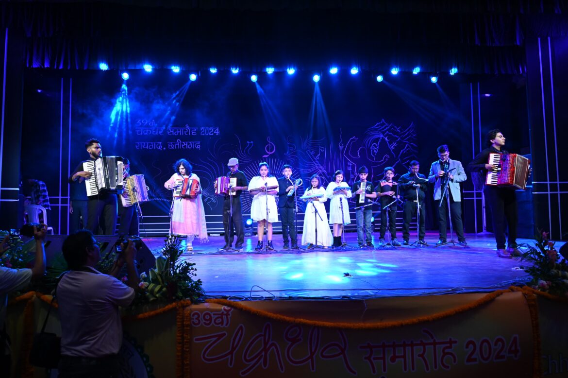 Raigarh News: संगीत सम्राट महाराजा चक्रधर सिंह की स्मृति में आयोजित चक्रधर समारोह की हर शाम गीत, संगीत और नृत्य की नई इबारत लिख रही है। चक्रधर समारोह की चौथी शाम एकॉर्डियन की सुरीली धुनों से सजी। रायपुर से पहुंचे तपसीर मोहम्मद और उनकी टीम ने कई प्रसिद्ध गीतों की इंस्ट्रुमेंटल प्रस्तुति दी। @RajatkiranNews