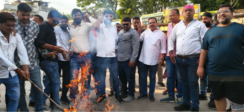 रायगढ़। मां का अपमान करना कांग्रेस की संस्कृति बन गई है सत्ता पाने के लोभ में कांग्रेस राजनीति की मर्यादाएं भूल गई है। उक्त बातें भाजयुमो नेताओं ने गांधी चौक में राहुल के साथ तेजस्वी यादव के पुतला दहन के दौरान कही।
