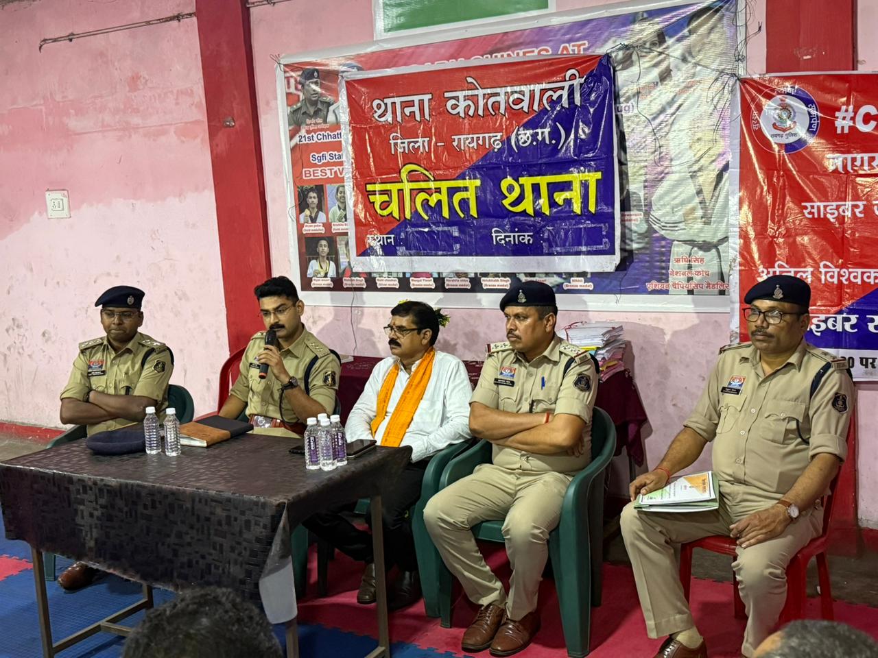 रायगढ़। पुलिस अधीक्षक दिव्यांग कुमार पटेल के दिशा निर्देशन पर आज 8 अक्टूबर 2025 को पुलिस सामुदायिक भवन रायगढ़ में कोतवाली पुलिस द्वारा जनप्रतिनिधियों के साथ महत्वपूर्ण बैठक के साथ साइबर जागरूकता एवं नागरिक सम्मान कार्यक्रम का आयोजन किया गया। कार्यक्रम में नगर पुलिस अधीक्षक मयंक मिश्रा, उप पुलिस अधीक्षक (साइबर सेल) अनिल विश्वकर्मा, नगर निगम सभापति डिग्री लाल साहू, थाना प्रभारी कोतवाली निरीक्षक सुखनंदन पटेल तथा उप निरीक्षक ऐनु देवांगन मंचासीन रहे। नगर पुलिस अधीक्षक मयंक मिश्रा ने शहर में यातायात व्यवस्था को सुदृढ़ बनाने के लिए लोगों को यातायात नियमों के पालन हेतु जागरूक रहने की सलाह दी।