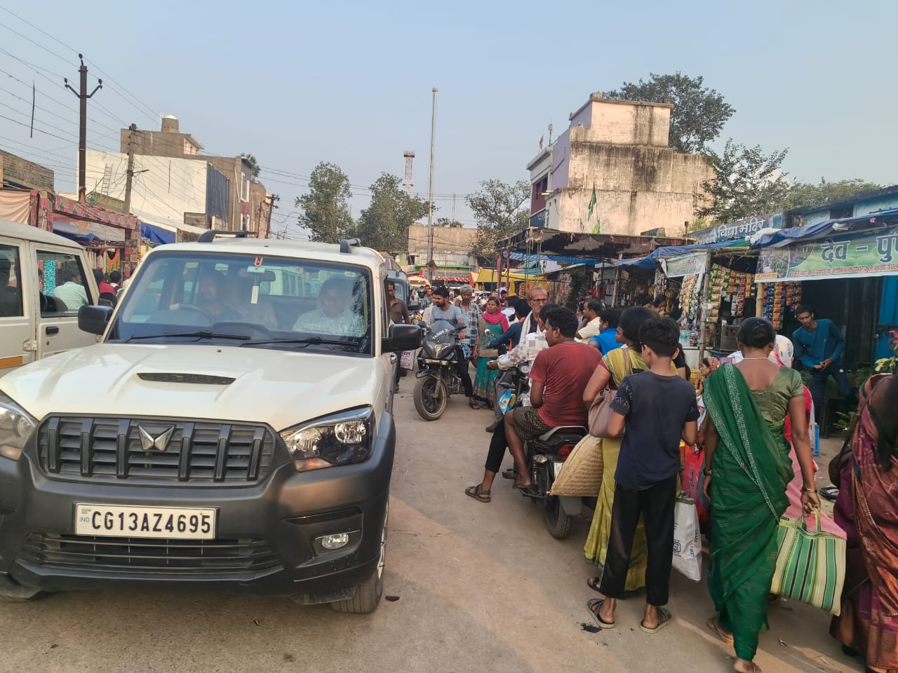 घरघोड़ा। बुधवार को साप्ताहिक बाजार के साथ दिवाली की चहल-पहल ने घरघोड़ा नगर को मानो ठहरा दिया। सुबह से ही जय स्तंभ चौक और मुख्य बाजार में गांव-गांव से पहुंचे खरीददारों की भारी भीड़ उमड़ पड़ी। हर कोई दीपावली की खरीदारी में व्यस्त था, पर प्रशासन की लापरवाही के चलते नगर का यातायात पूरी तरह चरमरा गया।