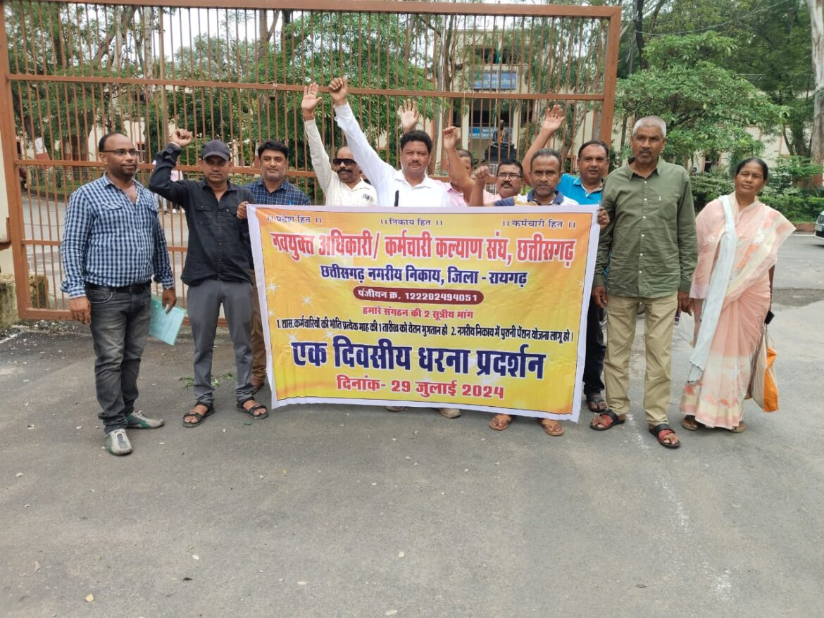 रायगढ़। नगरीय निकायों में प्रतिमाह वेतन व्यवस्था सुनिश्चित करने एवं पुरानी पेंशन योजना लागू करने की मांग को लेकर नवयुक्त अधिकारी/कर्मचारी कल्याण संघ के नेतृत्व में अधिकारी कर्मचारी एक दिवसीय हड़ताल पर हैं। संघ के प्रदेश अध्यक्ष राजेश सोने, प्रदेश उपाध्यक्ष मुकेश तिवारी एवं रायगढ़ जिला अध्यक्ष अरूण राठौर तथा जिला महामंत्री संदीप पटेल के नेतृत्व में आज समस्त नगरीय निकाय के नियमित कर्मचारियों ने धरना प्रदर्शन कर मुख्यमंत्री के नाम ज्ञापन सौंपा। संघ के जिला अध्यक्ष अरूण राठौर का कहना है कि निकायों में वेतन समस्या का समाधान शासन स्तर से करने एवं पुराना पेंशन लागू करने को लेकर आज 29 जुलाई को एक दिवसीय हड़ताल पर रहे और कलेक्टोरेट में अपनी मांगों के समर्थन में प्रदर्शन कर मुख्यमंत्री के नाम कलेक्टर जिला रायगढ़ को ज्ञापन सौंपा गया। संघ की ओर से कहा गया है कि प्रत्येक महीने की 1 तारीख को वेतन भुगतान की व्यवस्था सुनिश्चित की जावे। साथ ही अन्य विभागों की तरह नगरीय निकायों में पुरानी पेंशन योजना शीघ्र लागू की जाए। निकायों के उपरोक्त समस्याओं का निराकरण नहीं होने पर आगामी दिनों में अनिश्चितकालीन हड़ताल किया जावेगा।आज कलेक्टोरेट पहुंचकर ज्ञापन सौंपने के दौरान नगर पालिका खरसिया, नगर पंचायत किरोड़ीमलनगर,लैलूंगा, धर्मजयगढ़ और घरघोड़ा के कर्मचारी प्रमुख रूप से मौजूद रहे।