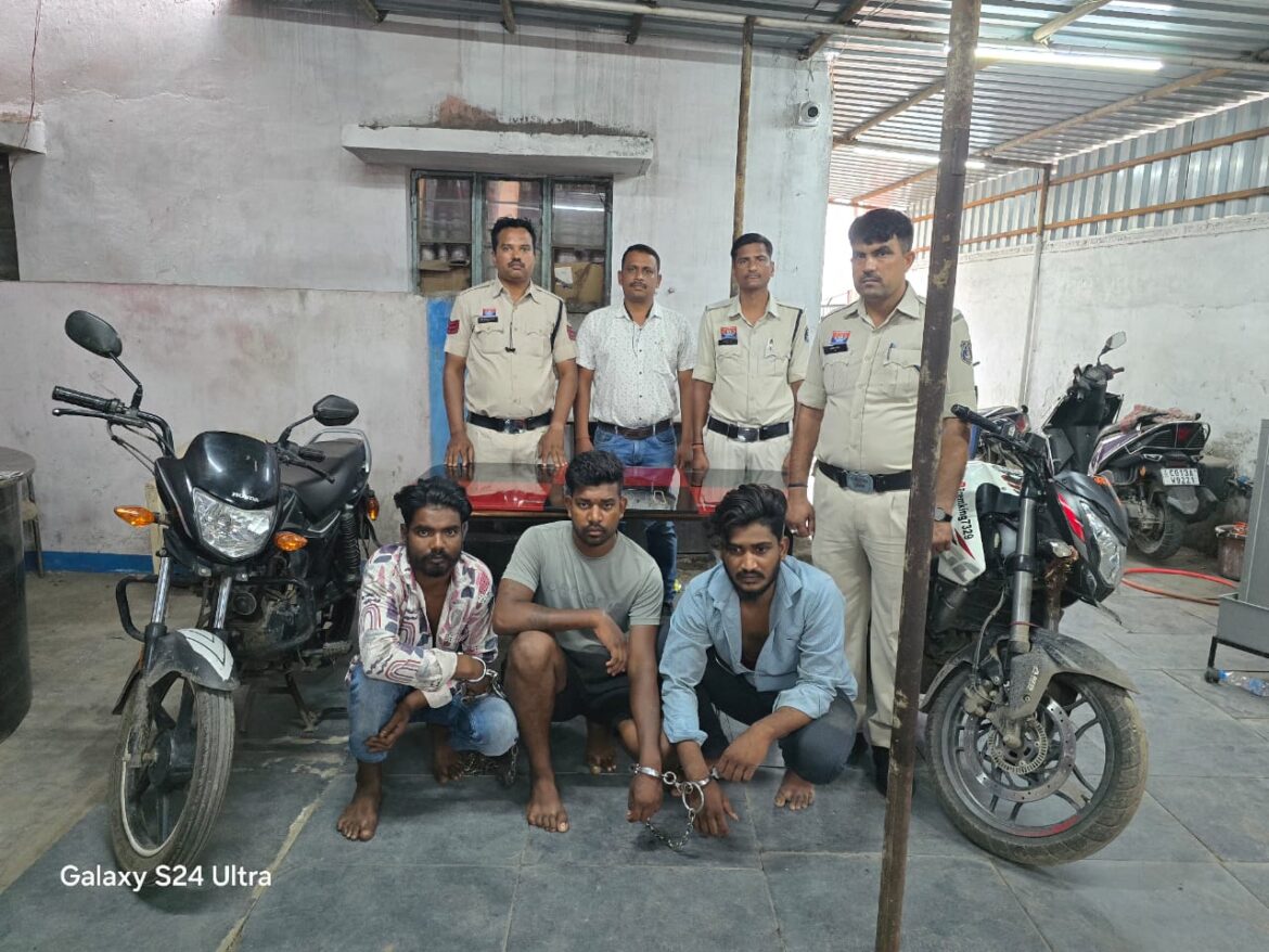 घटना की गंभीरता को देखते हुए पुलिस अधीक्षक दिव्यांग पटेल के निर्देशन एवं नगर पुलिस अधीक्षक आकाश शुक्ला के मार्गदर्शन में थाना प्रभारी निरीक्षक प्रशांत राव ने एक विशेष टीम का गठन कर जांच शुरू की। पीड़ित से आरोपियों के हुलिए की जानकारी लेकर पुराने बदमाशों और घूमंतू तत्वों से सघन पूछताछ की गई। इसी बीच मुखबिर से सूचना मिली कि आदतन अपराधी प्रेम सारथी अपने एक साथी के साथ छीनी गई सोने की चेन को बेचने के लिए पल्सर बाइक से ग्राहक तलाश रहा है।सूचना पर तत्काल कार्रवाई करते हुए प्रेम सारथी और उसके साथी गणेश सारथी को पल्सर बाइक सहित पकड़ लिया गया। पूछताछ में दोनों ने घटना को अंजाम देना स्वीकार किया और बताया कि उनके साथ विश्वकर्मा यादव और एक विधि के साथ संघर्षरत बालक भी शामिल था। पुलिस ने सभी आरोपियों को हिरासत में लेते हुए 1.70 लाख रुपये कीमत की दो सोने की चेन तथा वारदात में प्रयुक्त होंडा बाइक भी जप्त की है।