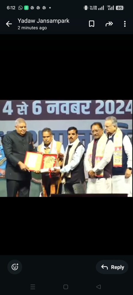 डॉ. खूबचंद बघेल कृषक रत्न पुरस्कार से सम्मानित किसान