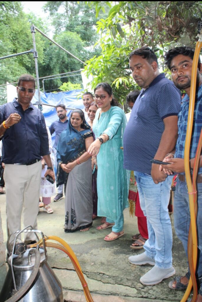 सारंगढ़-बिलाईगढ़, 20 सितंबर 2025/ कलेक्टर डॉ संजय कन्नौजे ने ग्राम झनकपुर के पशुपालक किसान, लखपति दीदी मनोरमा नायक एवं जीवनलाल नायक के डेयरी का निरीक्षण घर जाकर किया। इस दौरान वहां उनके बाड़ा में 5 एचएफ (जर्सी) गाय और उनके बछड़े थे। बाड़ा में बिजली व्यवस्था, बैठने के लिए सीट, खाने के लिए चारा में कुटी (पुआल के टुकड़े), खली, सफाई के लिए टंकी, दूध दुहने के लिए मशीन, गोबर से गोबर गैस बनाने का सेटअप आदि आवश्यक सुविधा को अपनाया गया है। कलेक्टर ने इन सभी व्यवस्थाओं का अवलोकन किया। कलेक्टर डॉ कन्नौजे ने पशुपालक किसानों को कहा कि इस गौसेवा कार्य को अन्य ग्रामीणों को भी अपनाने के लिए प्रेरित करें। इस दौरान एसडीएम वर्षा बंसल, सीईओ जनपद पंचायत बरमकेला अजय पटेल उपस्थित थे।
