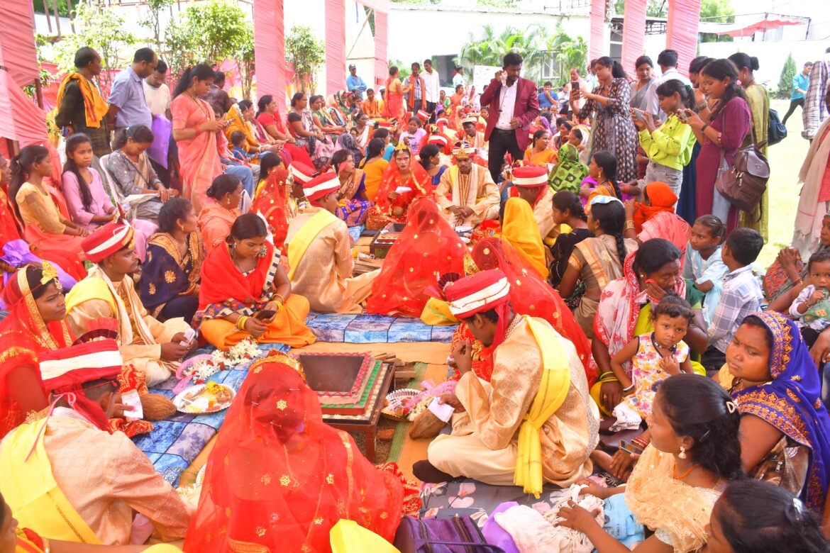 रायगढ़। जिले के कलेक्टर कार्तिकेया गोयल के मार्गदर्शन में मंगलवार को 45 जोड़ों का विवाह रायगढ़ जिला मुख्यालय में सम्पन्न हुआ। विवाह में रायगढ़ शहरी, रायगढ़ ग्रामीण तथा पुसौर विकासखण्ड के जोड़े सम्मिलित हुए। गायत्री परिवार द्वारा पारंपरिक रीति से विधिवत विवाह कराया गया।