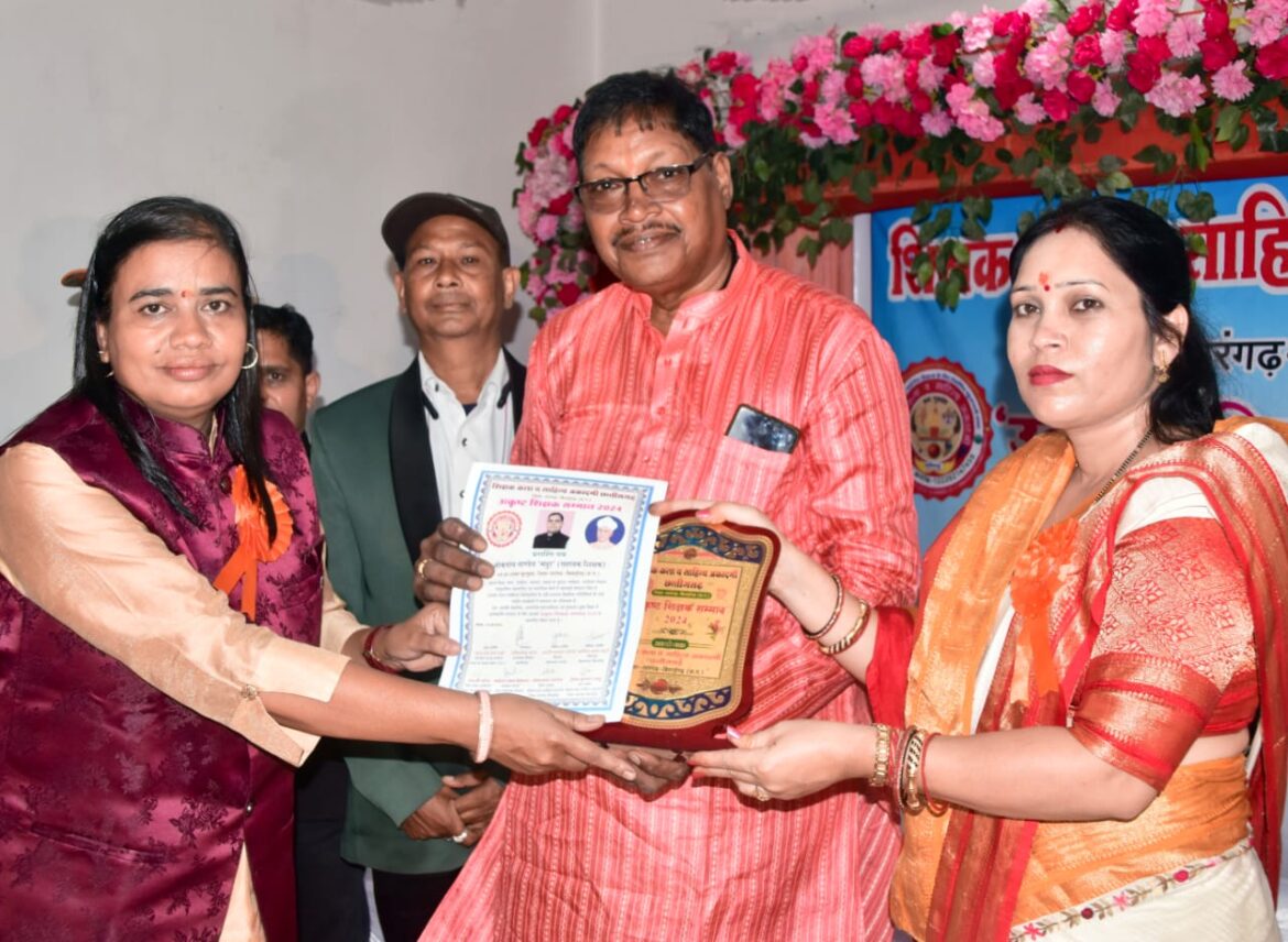 Raigarh News: शिक्षक कला एवं साहित्य अकादमी छत्तीसगढ़ द्वारा दि.14.09.2024 को उत्कृष्ट शिक्षक सम्मान समारोह का आयोजन साहू भवन सारंगढ़ में किया गया। कार्यक्रम के मुख्य अतिथि उत्तरी गनपत जांगड़े, प्रांताध्यक्ष कौशलेंद्र पटेल, से.नि.प्राचार्य एवं सलाहकार डॉ.प्रमोद आदित्य,महासचिव डॉ.बोधीराम साहू, कोषाध्यक्ष महेत्तर लाल देवांगन आदि शिकसा के सदस्यों की गरिमामयी उपस्थिति में बहुआयामी प्रतिभा की धनी डॉ.मनीषा त्रिपाठी प्रधान पाठक शासकीय रविशंकर प्राथमिक शाला रायगढ़ को शिक्षा एवं साहित्य के क्षेत्र में उत्कृष्ट योगदान हेतु उत्कृष्ट शिक्षक सम्मान से सम्मानित किया गया। सम्मान स्वरूप उन्हें बुके(पुष्प गुच्छ), प्रशस्ति -पत्र, स्मृति -चिह्न (मोमेंटो) प्रदान किया गया।