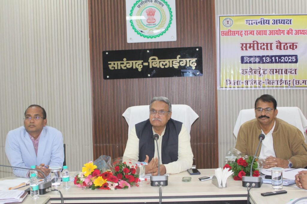 सारंगढ़-बिलाईगढ़, 13 नवंबर 2025/छत्तीसगढ़ राज्य खाद्य आयोग अध्यक्ष संदीप कुमार शर्मा की अध्यक्षता में कलेक्ट्रेट सभाकक्ष सारंगढ़ में गुरुवार को जिला स्तरीय समीक्षा बैठक आयोजित किया गया। बैठक में पीडीएस राशन दुकान, माध्यन्ह भोजन योजना, पोषण आहार योजना तथा ट्राइबल विभाग द्वारा संचालित आश्रम, छात्रवासों हेतु खाद्यान पर आधारित योजनाओं की समीक्षा संबंधित विभाग के अधिकारियों से जानकारी लेकर की गई। समीक्षा बैठक में आयोग अध्यक्ष शर्मा ने जिले की सभी उचित मूल्य दुकानों में प्रत्येक माह निर्धारित समय पर राशन सामग्री के भंडारण एव वितरण के निर्देश दिए गए। उन्होंने सही मात्रा में गोदाम से दुकान तक भंडारण हो इसके लिए दुकान संचालक को रैंडम बोरा तौल करने हेतु निर्देश देने के लिए खाद्य अधिकारी को कहा। इसी प्रकार राशन दुकान में चावल का सॉफ्टवेयर और भौतिक सत्यापन कर रिकॉर्ड को दुरुस्त करने के लिए फ़ूड इंस्पेक्टर को निर्देशित करने हेतु खाद्य अधिकारी को कहा गया। बैठक में हितग्राहियों को किसी प्रकार असुविधा ना हो इस बात पर विशेष जोर देने कहा गया। साथ ही खाद्य वितरण में दोषियों पर सख्त कार्यवाही निलंबन और वेतन वृद्धि रोकने के लिए कहा गया।