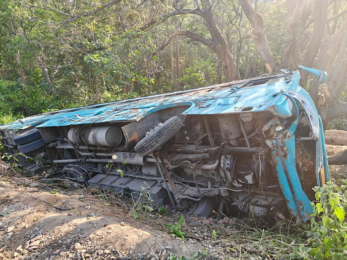 रायगढ़। बीती रात तेज रफ्तार बस अनियंत्रित होकर पलट गई। रात के समय बस रायगढ़ से झारखंड जा रही थी। तभी रास्ते में गेरसा-आमापाली के पास हादसा हुआ। घटना में 7-8 लोगों को चोटे आयी। घटना धरमजयगढ़ थाना क्षेत्र की है।