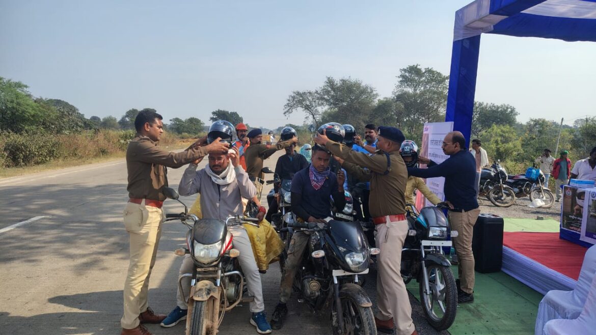 रायगढ़। पुलिस अधीक्षक दिव्यांग पटेल के दिशा-निर्देशन पर आमजन को यातायात नियमों के प्रति जागरूक करने और सुरक्षित व सुगम यातायात व्यवस्था सुनिश्चित करने जिले में पुलिस द्वारा लगातार मोटर व्हीकल जांच कार्यवाही और विविध जागरूकता कार्यक्रम चलाए जा रहे हैं। इसी क्रम में आज 29 नवंबर 2025 को हेलमेट उपयोग की अनिवार्यता पर जोर देने के उद्देश्य से यातायात पुलिस रायगढ़ और भूपदेवपुर पुलिस ने एनएच-49 स्थित चिन्हित ब्लैक स्पॉट कांशीचुंवा चौक पर जागरूकता कार्यक्रम आयोजित किया ।